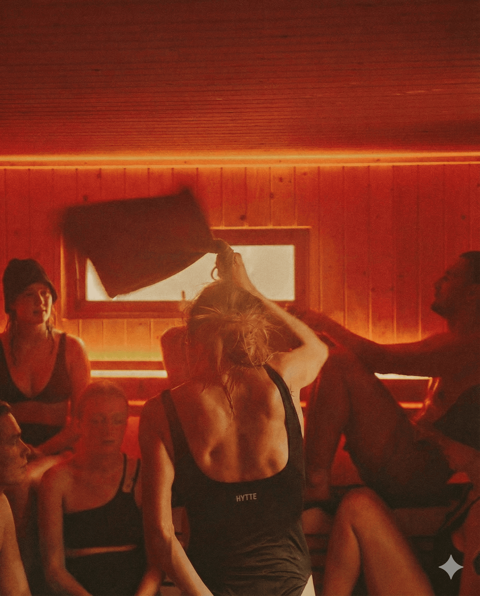 At Hytte, saunagus is a guided heat session. Essential oils meet hot stone, and the Gusmester moves warmth and scent through the space. Each session runs in three rounds with short breaks in between. Music, rhythm, and carefully chosen oils set the tone - focused, grounding, and designed to leave you reset.